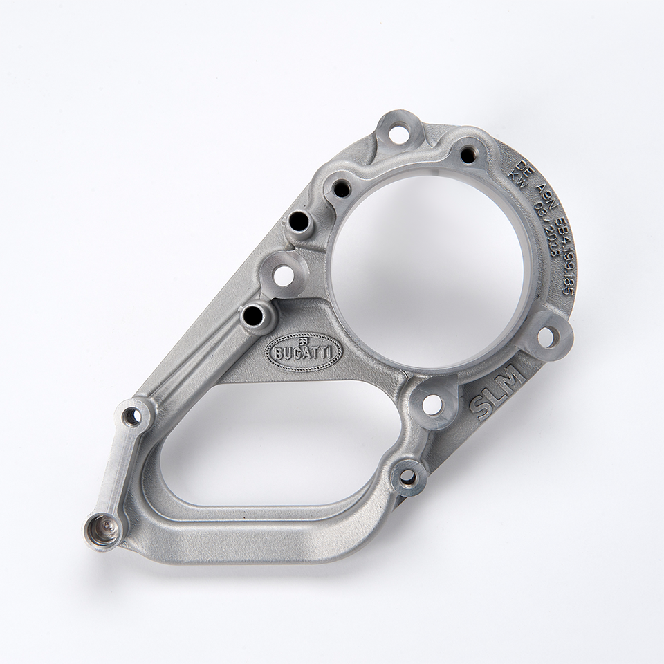 Installed in all vehicles since the delivery of the first Bugatti Chiron from the production facility in Molsheim this part provides integrated water-cooling channels to act as an active heat shield to motor's electric pump. The complex geometry was produced at lower costs than with traditional methods.